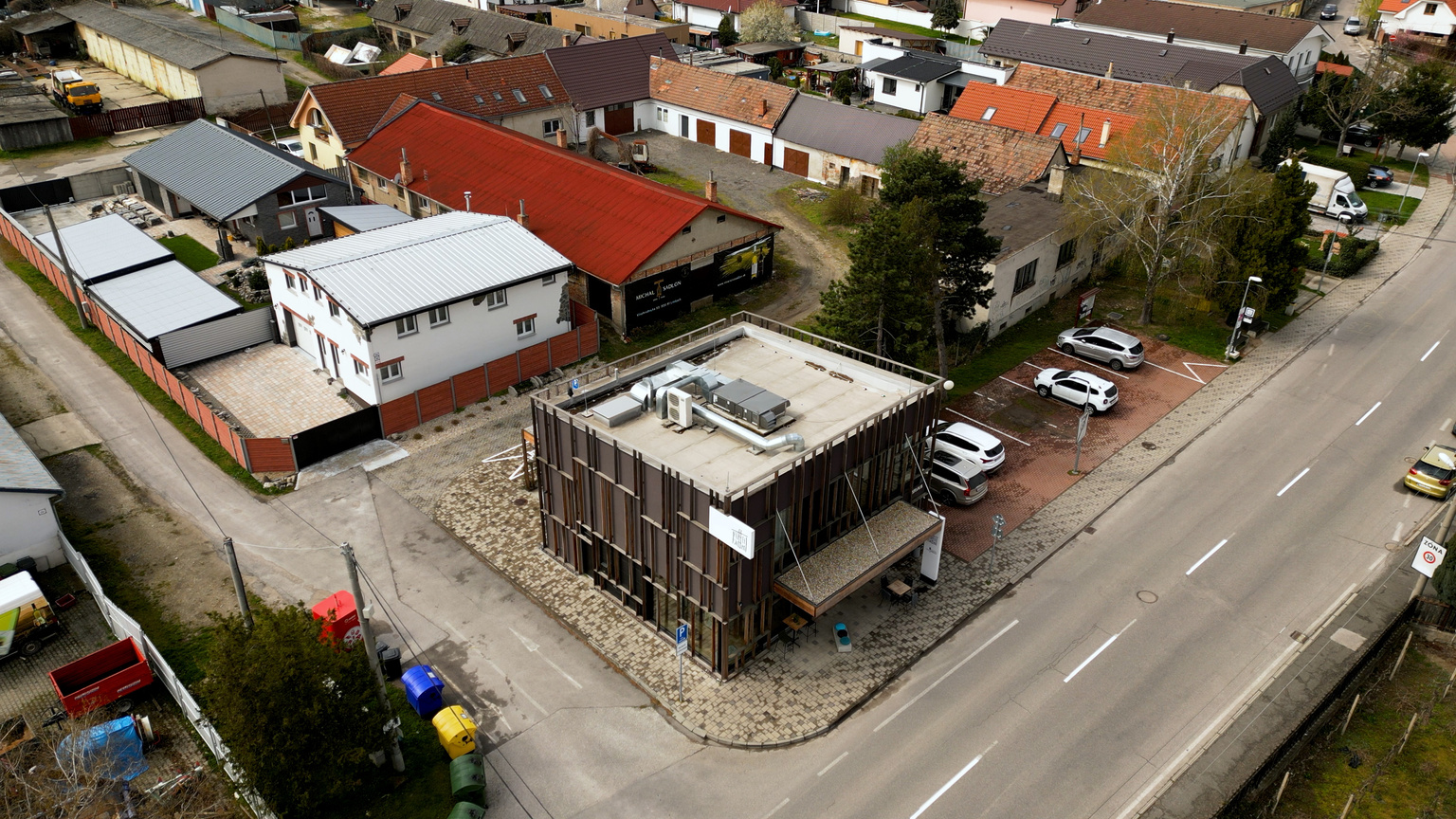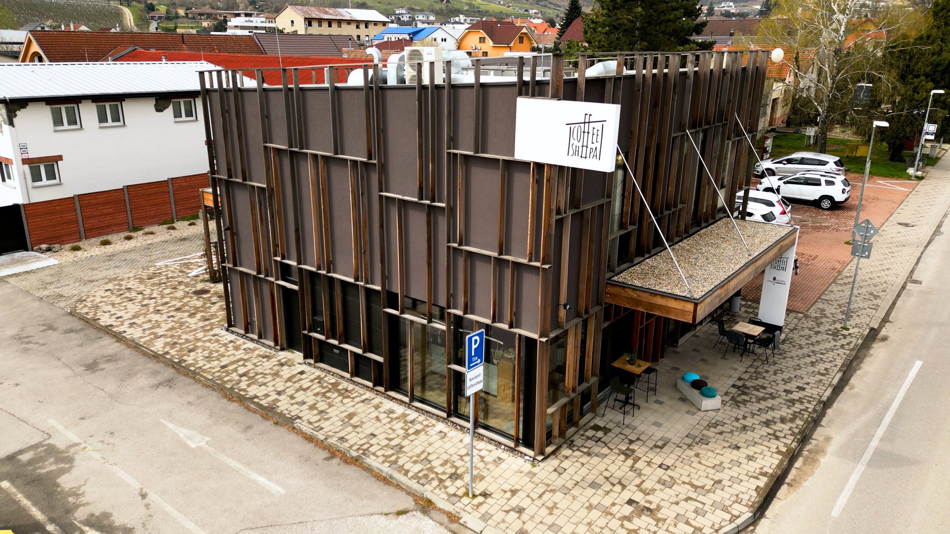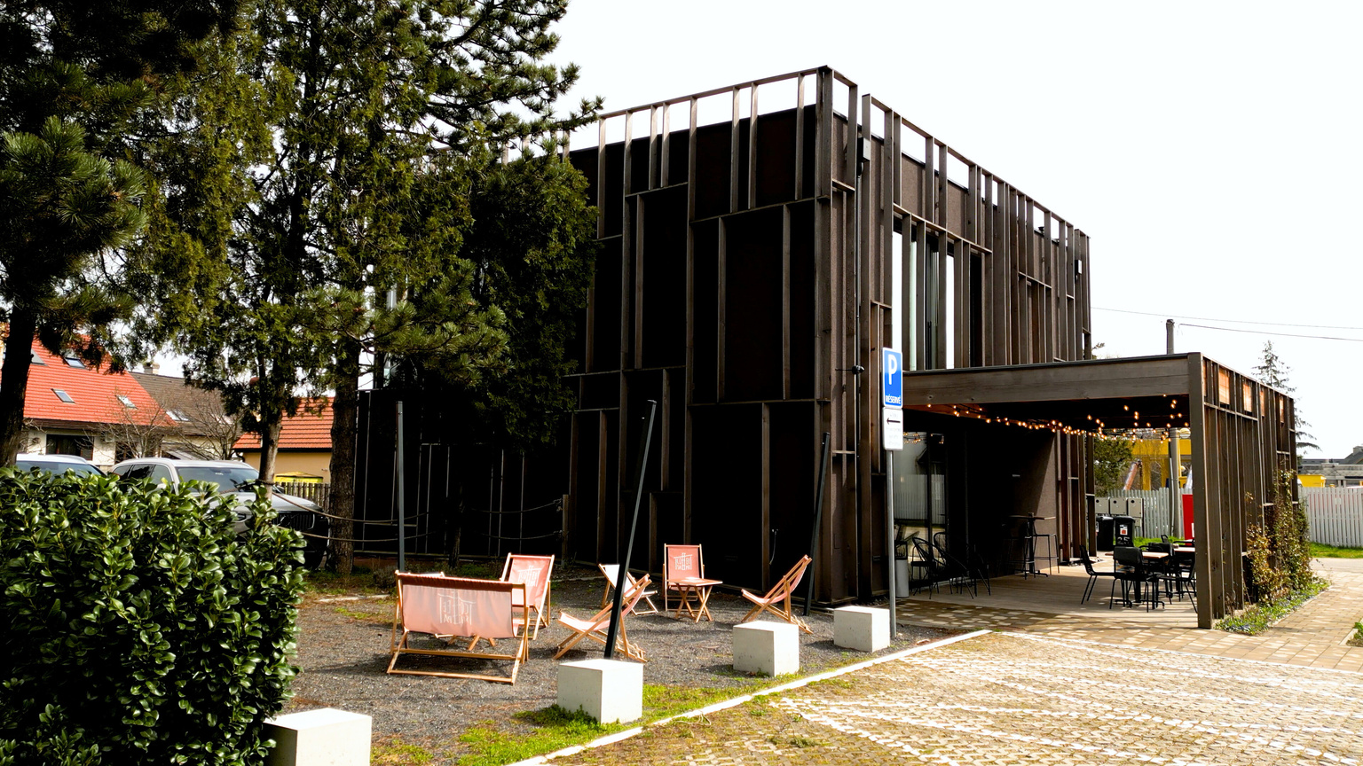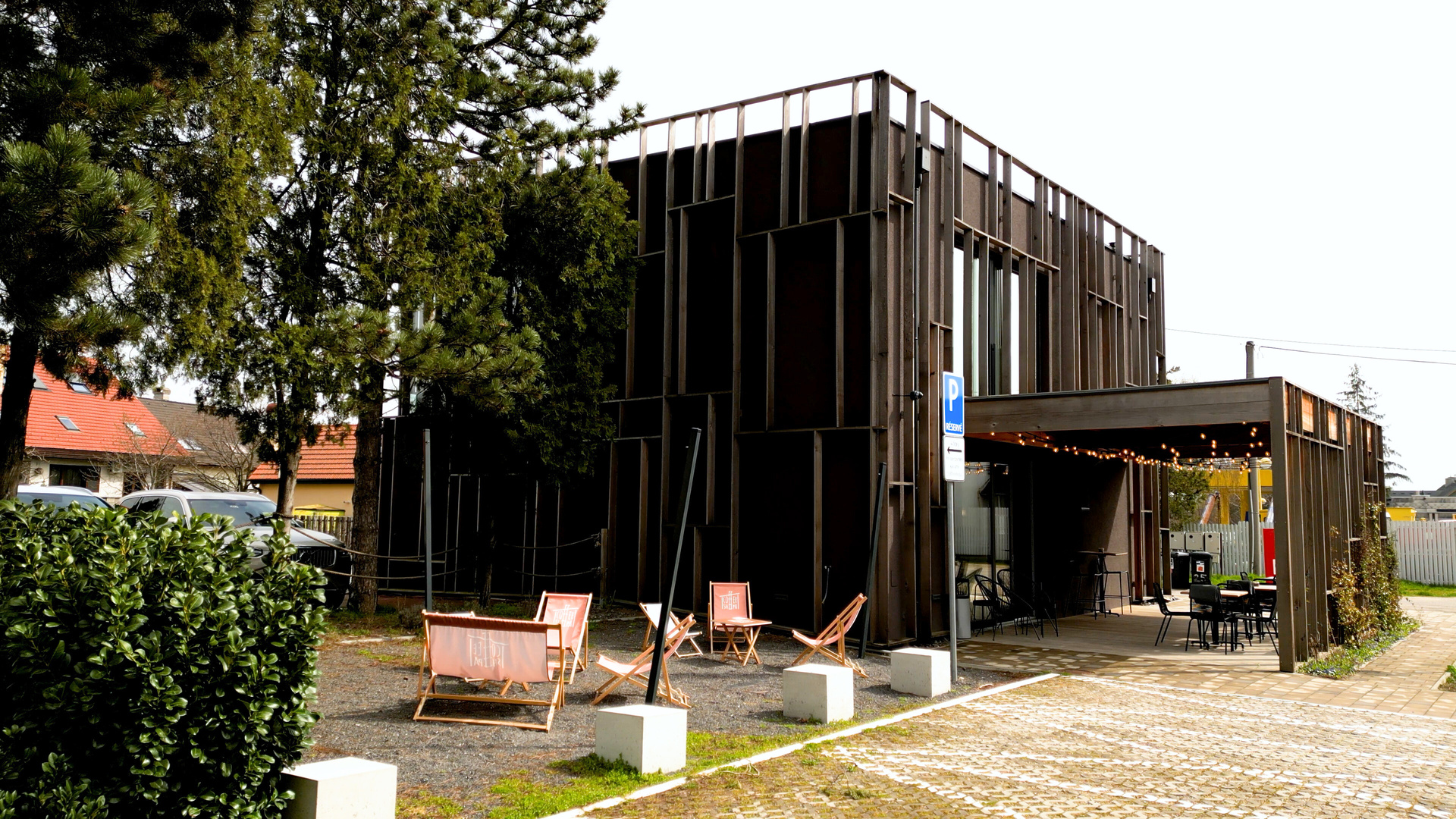 Vďaka svojmu poznávaciemu znameniu - unikátnemu rastrovému obkladu z cédrového dreva - novostavba upúta už z diaľky.