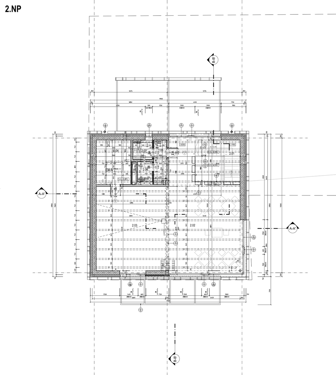 Na poschodí (102,89m2) je variabilný priestor s možnosťou spájania a rozdeľovania podľa aktuálne prebiehajúcich aktivít.
