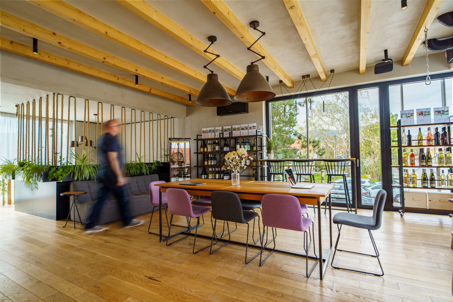 Poďte sa pozrieť, čo všetko ponúka veľkorysý priestor na prízemí, aktuálne zariadený ako kaviareň s barom.